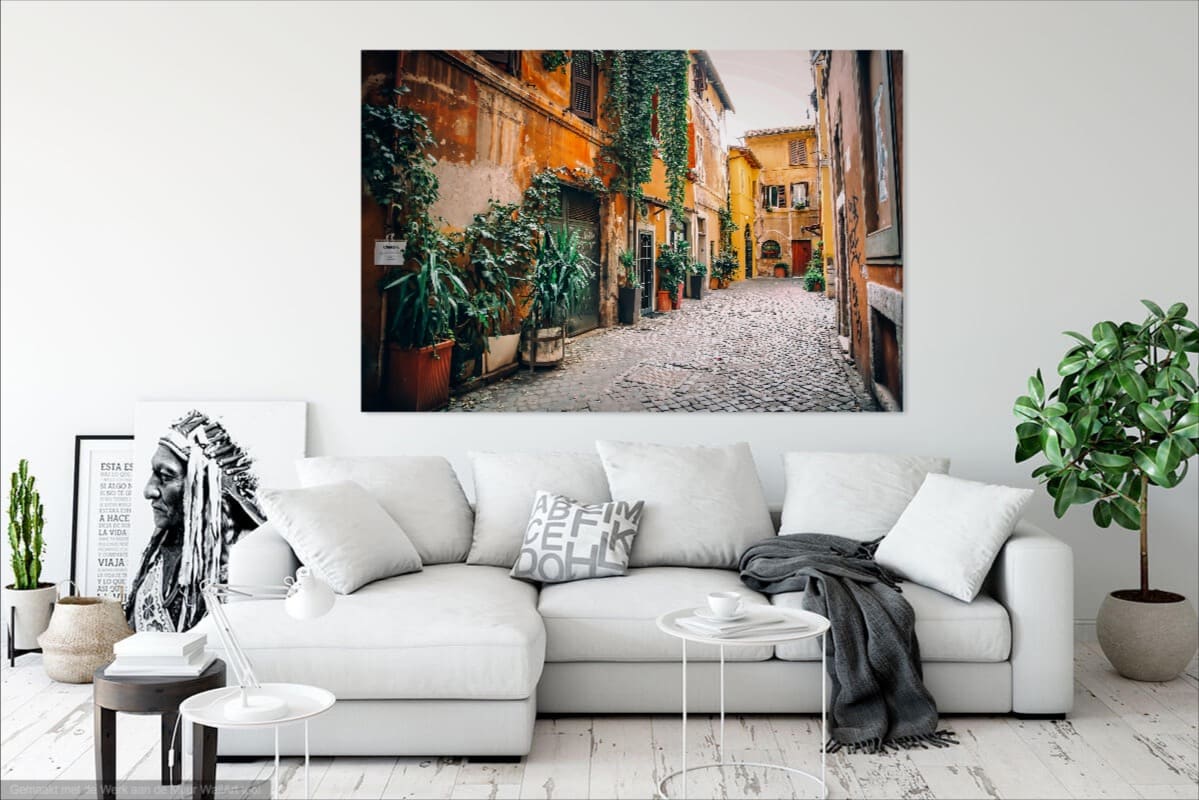 Strolling through the serenity of an Italian dream. A tranquil street with terracotta houses and lush wall-climbing plants, where time stands still.